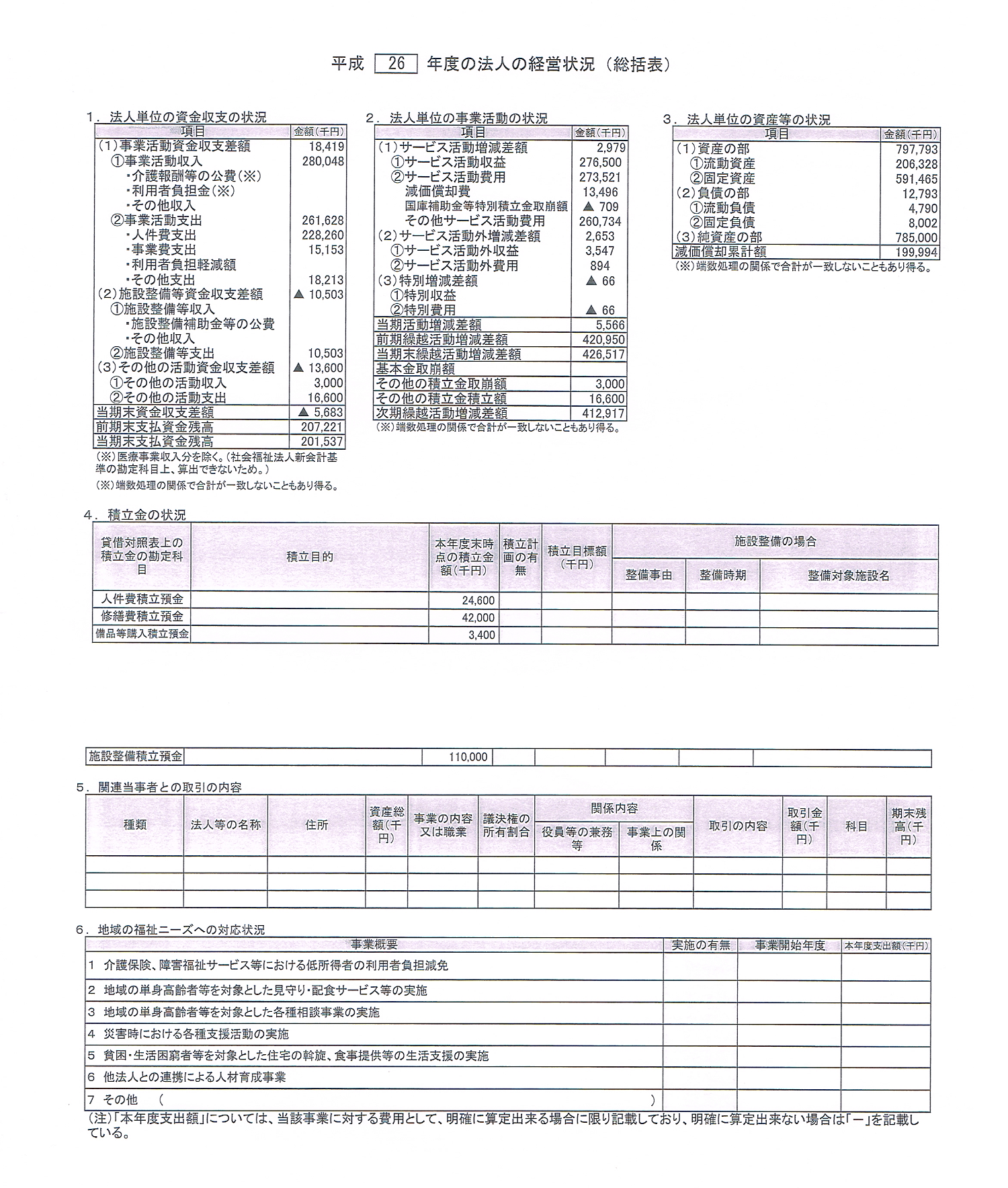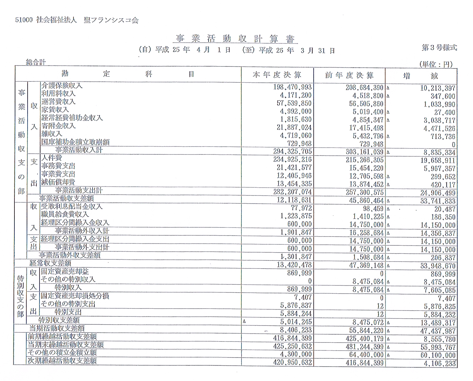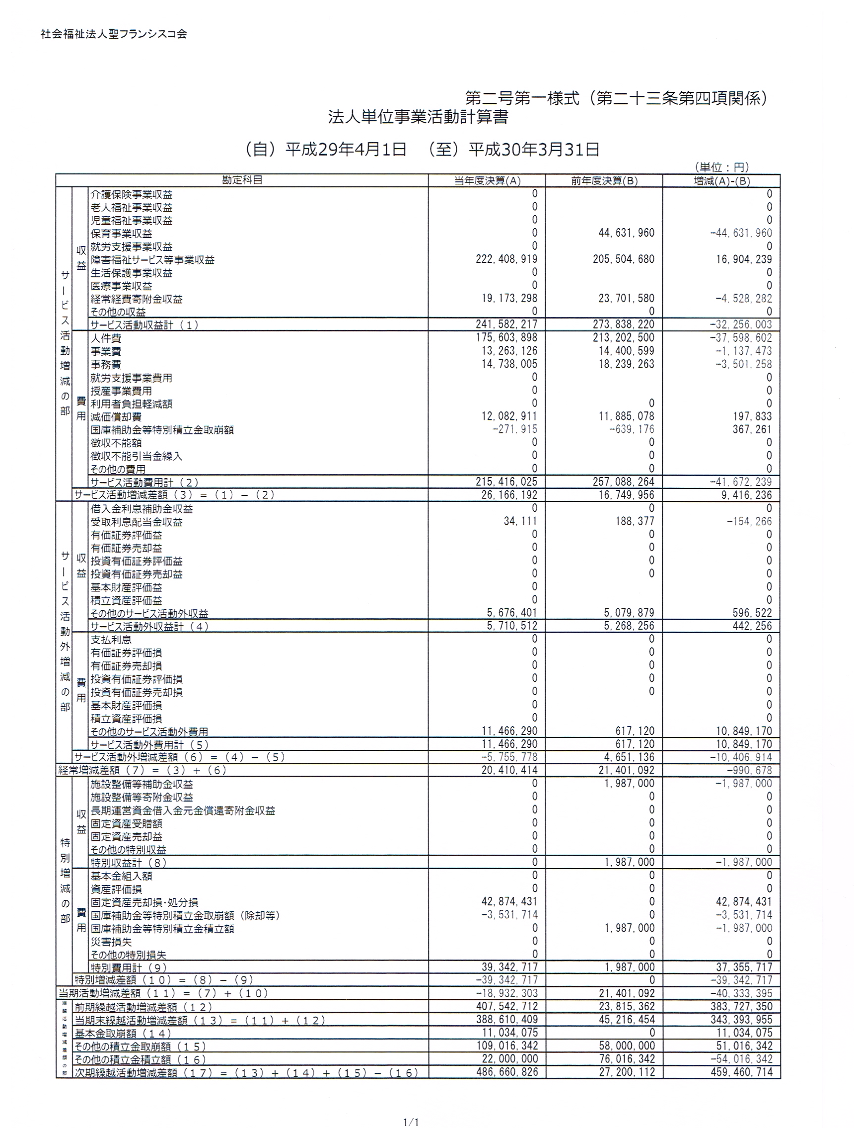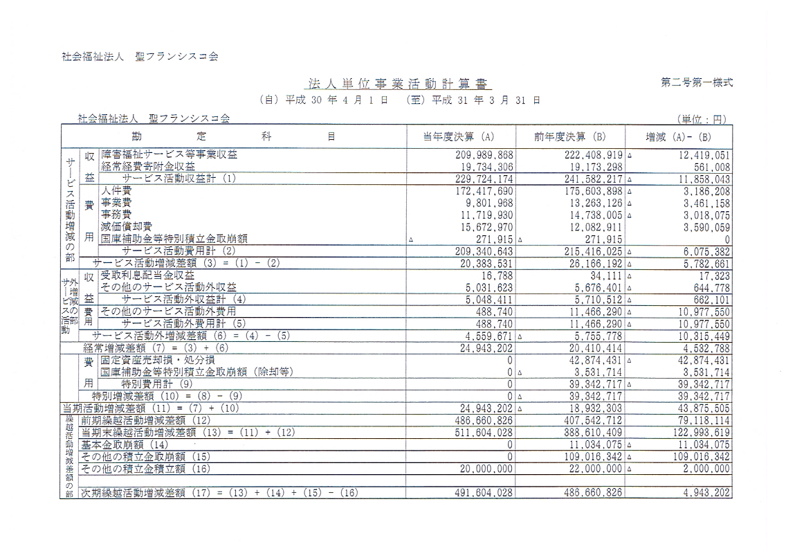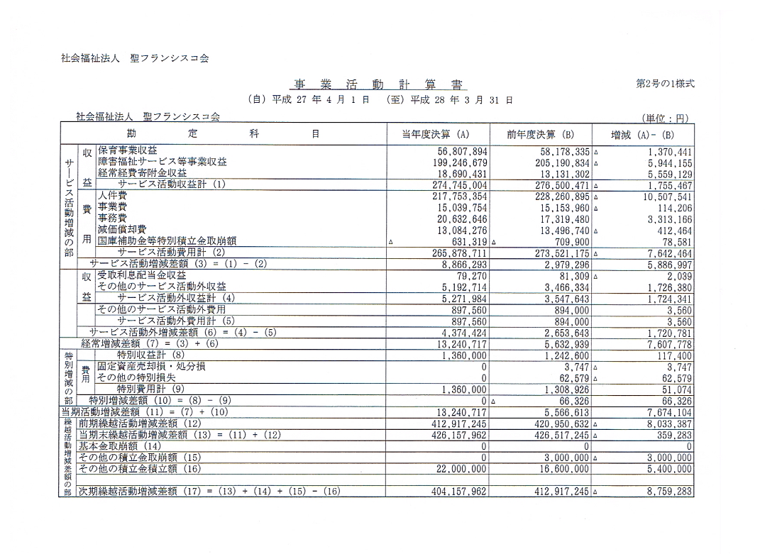 事業活動計算書