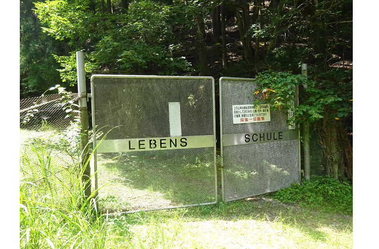 最寄である道の駅「姫石の湯」からレーベンス・シューレまでは自動車で約10分、歩きでは約60分。必ずしも急こう配ではない山道を行くとそこに出会うことができます。